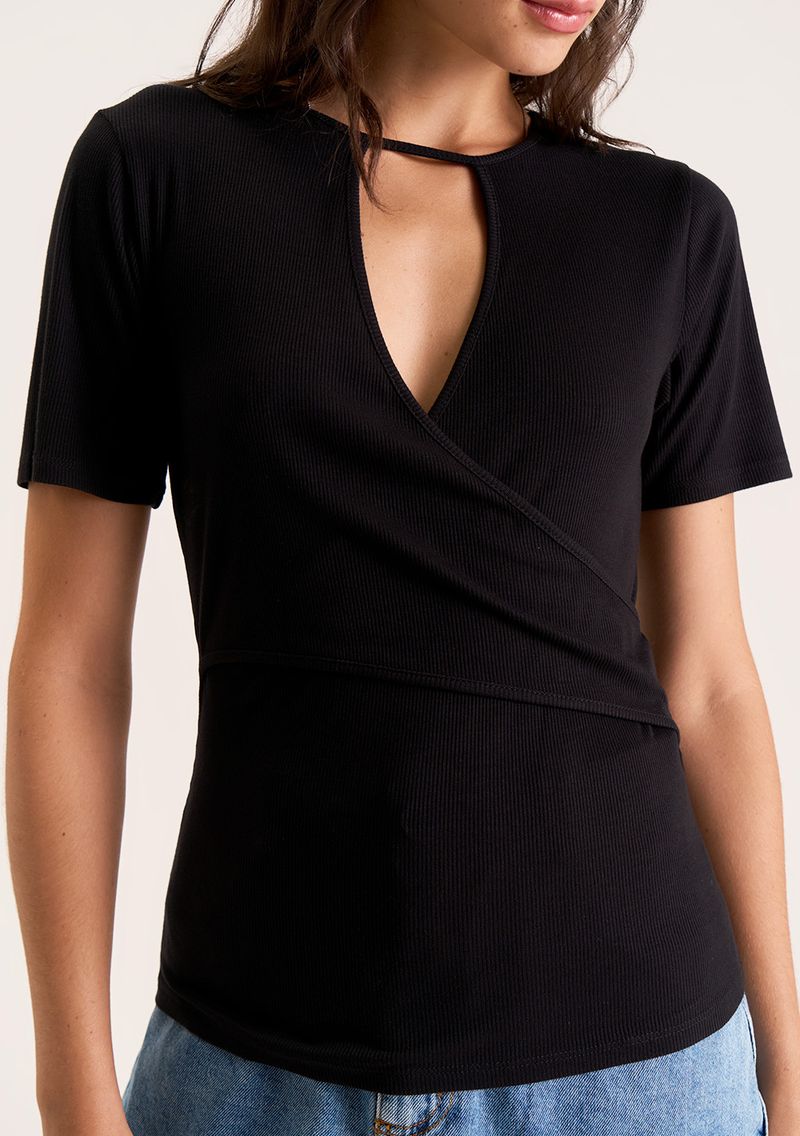 OUTLETFemininoRoupasBlusasBlusa Zinco Ajustada Decote Careca Manga Curta Padrão Preto