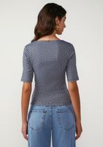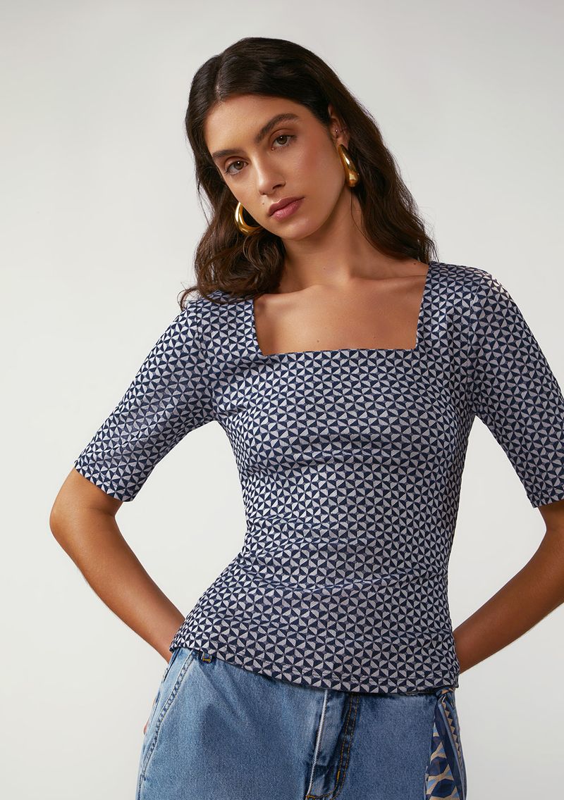Blusa Zinco Ajustada Decote Reto Manga Curta Padrão Azul