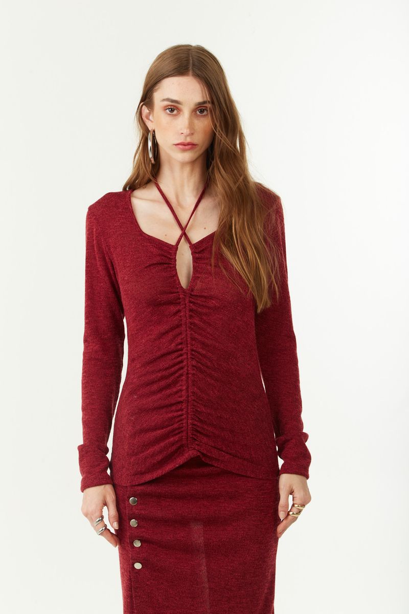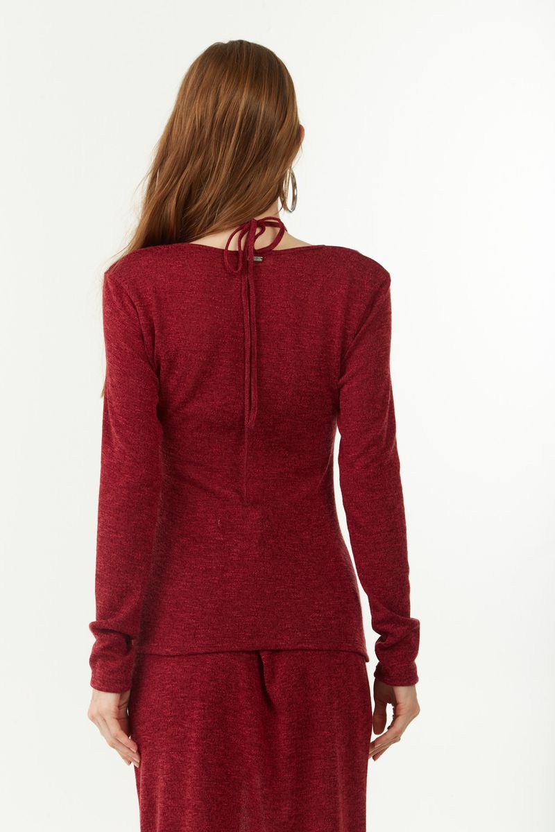 Blusa Zinco Ajustada Decote Reto Manga Longa Padrão Bordo