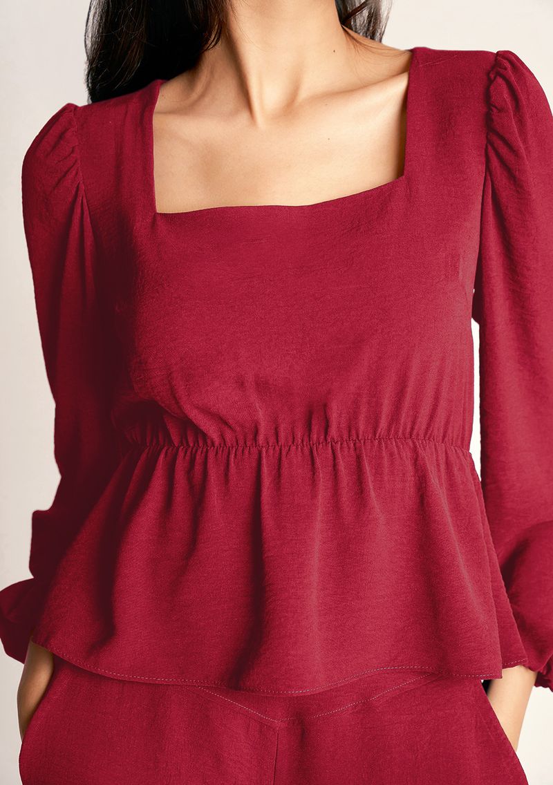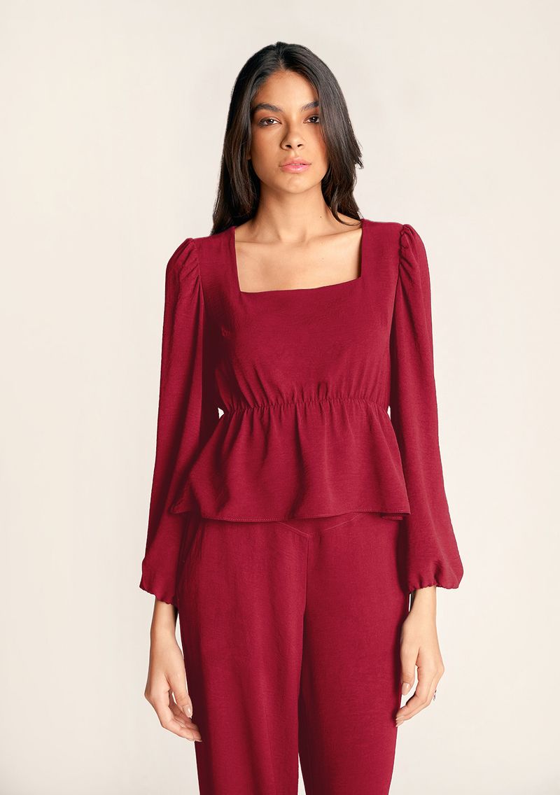 Blusa Zinco Decote Quadrado Manga Longa Detalhe Elástico Bordo