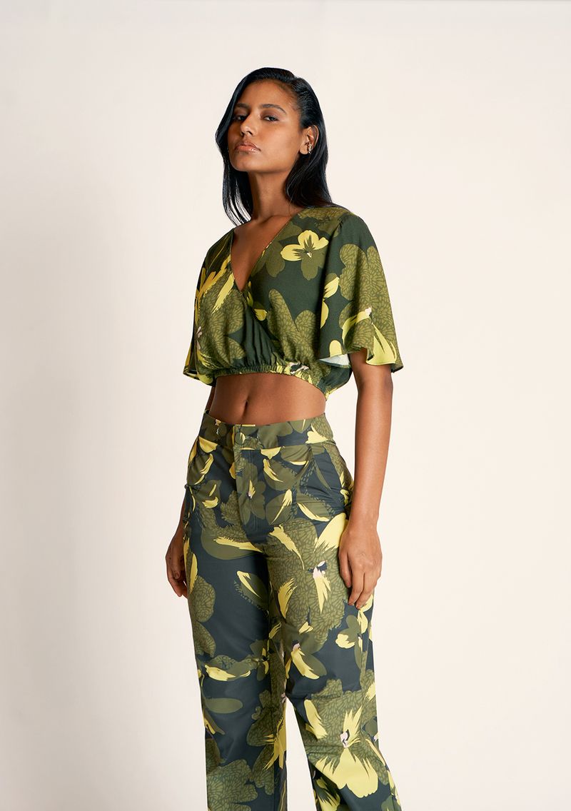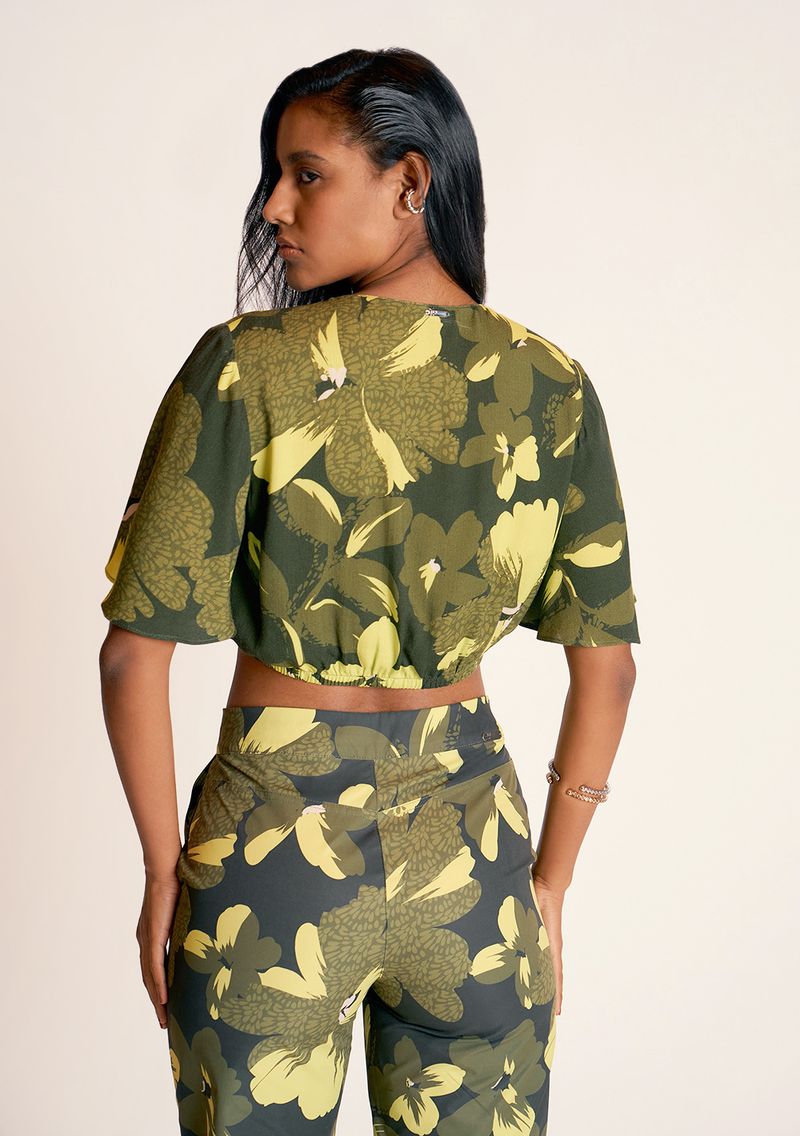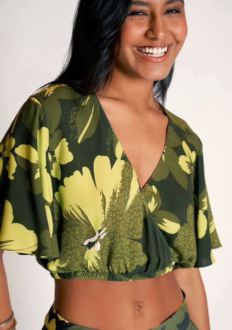 OUTLETFemininoRoupasBlusasBlusa Zinco Decote Transpassado Manga Curta Básica Verde