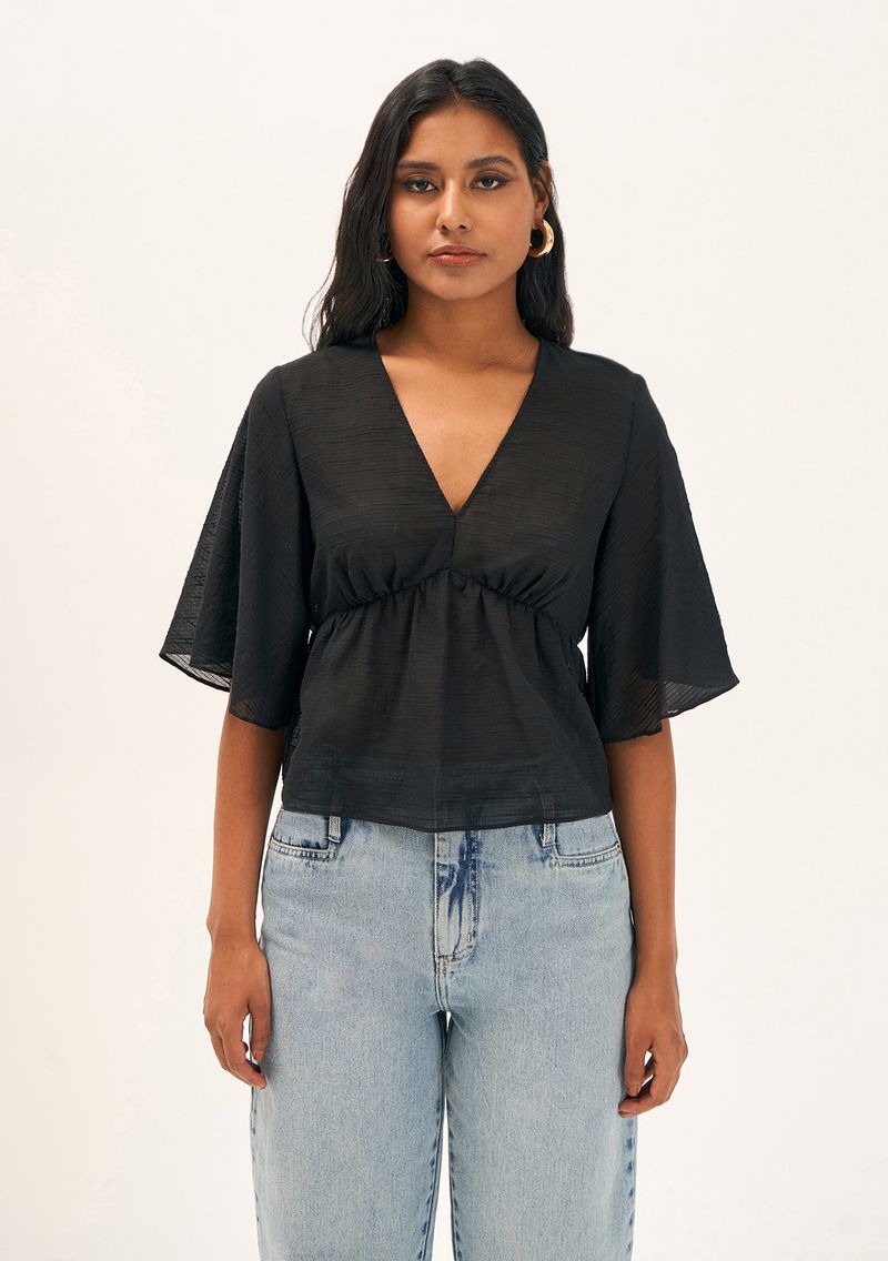 Blusa Zinco Decote V Manga Godê Básica Preto