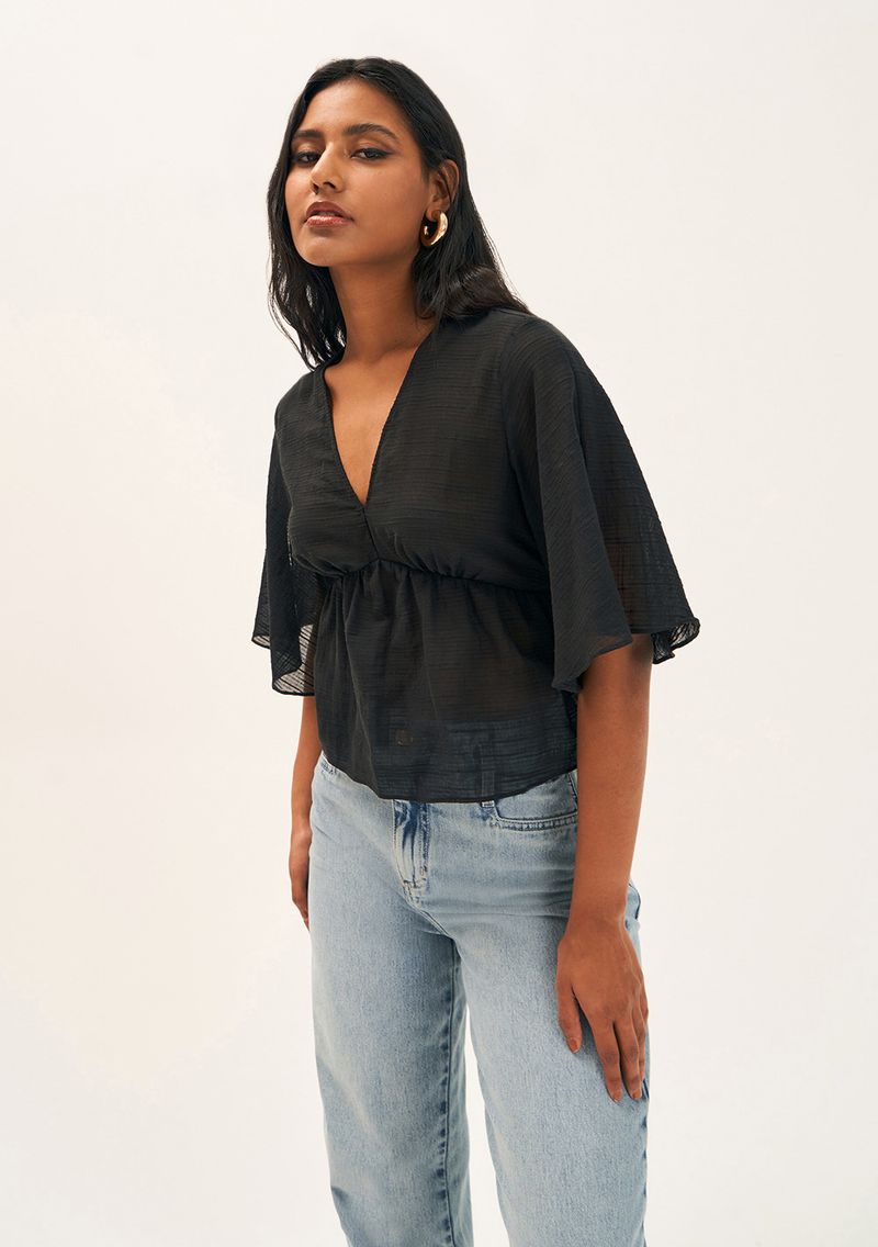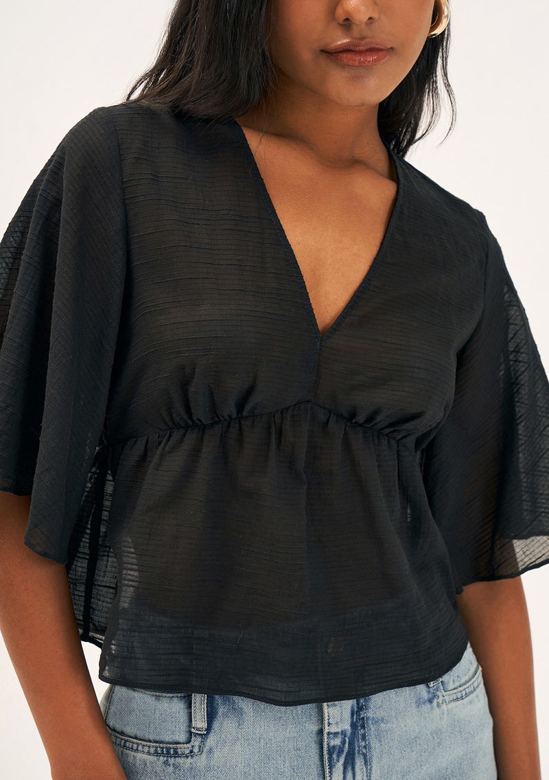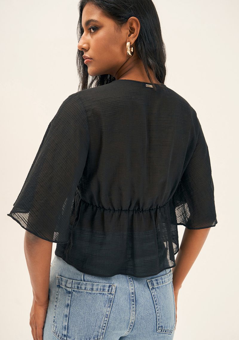 OUTLETFemininoRoupasBlusasBlusa Zinco Decote V Manga Godê Básica Preto