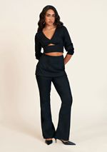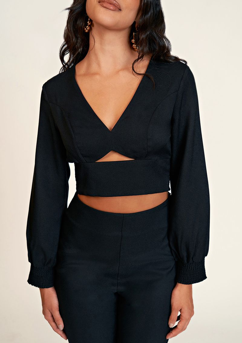Blusa Zinco Decote V Manga Longa Com Lastex Preto