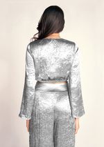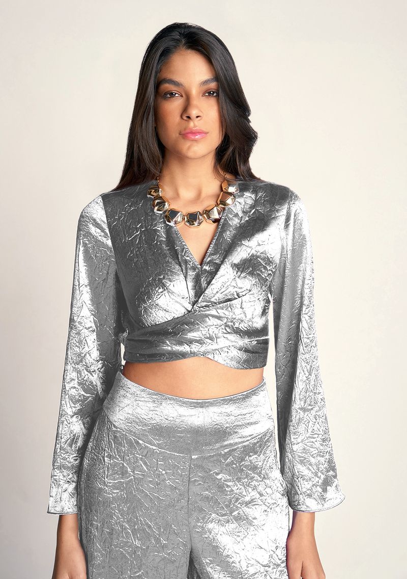 Blusa Zinco Decote V Manga Longa Trançado Frente Prata