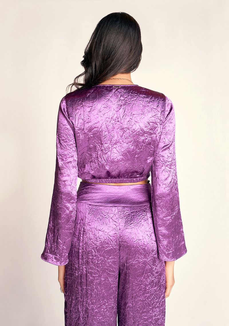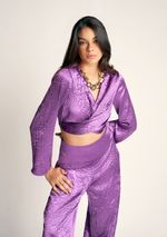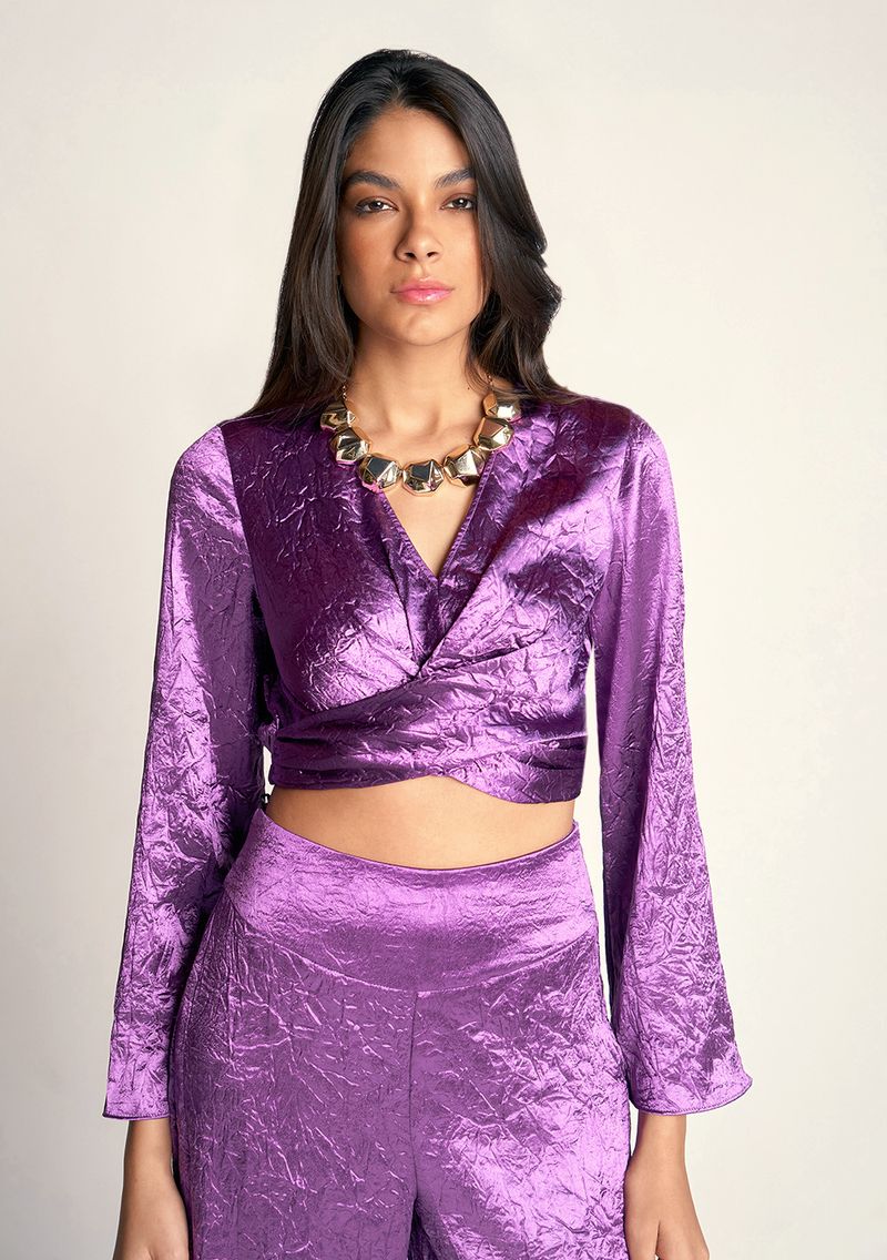 Blusa Zinco Decote V Manga Longa Trançado Frente Roxo