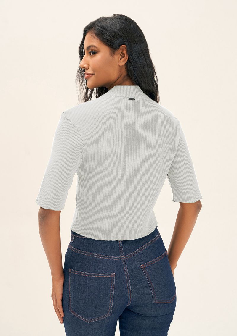 Blusa Zinco Gola Alta Manga Curta Tricôt Off White