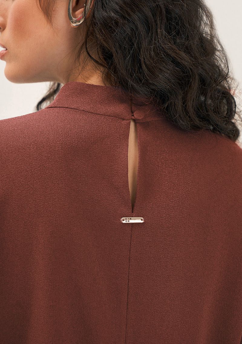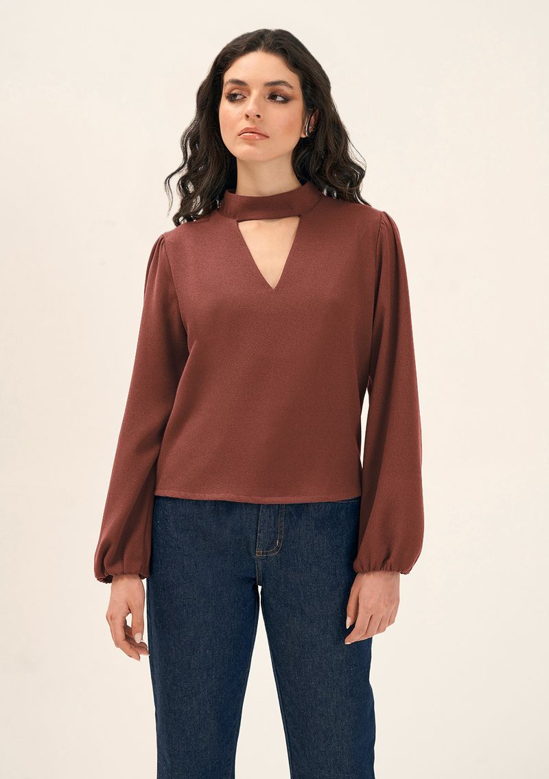 OUTLETFemininoRoupasBlusasBlusa Zinco Gola Redonda Manga Longa Detalhe Decote Laranja
