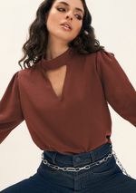 Blusa Zinco Gola Redonda Manga Longa Detalhe Decote Laranja