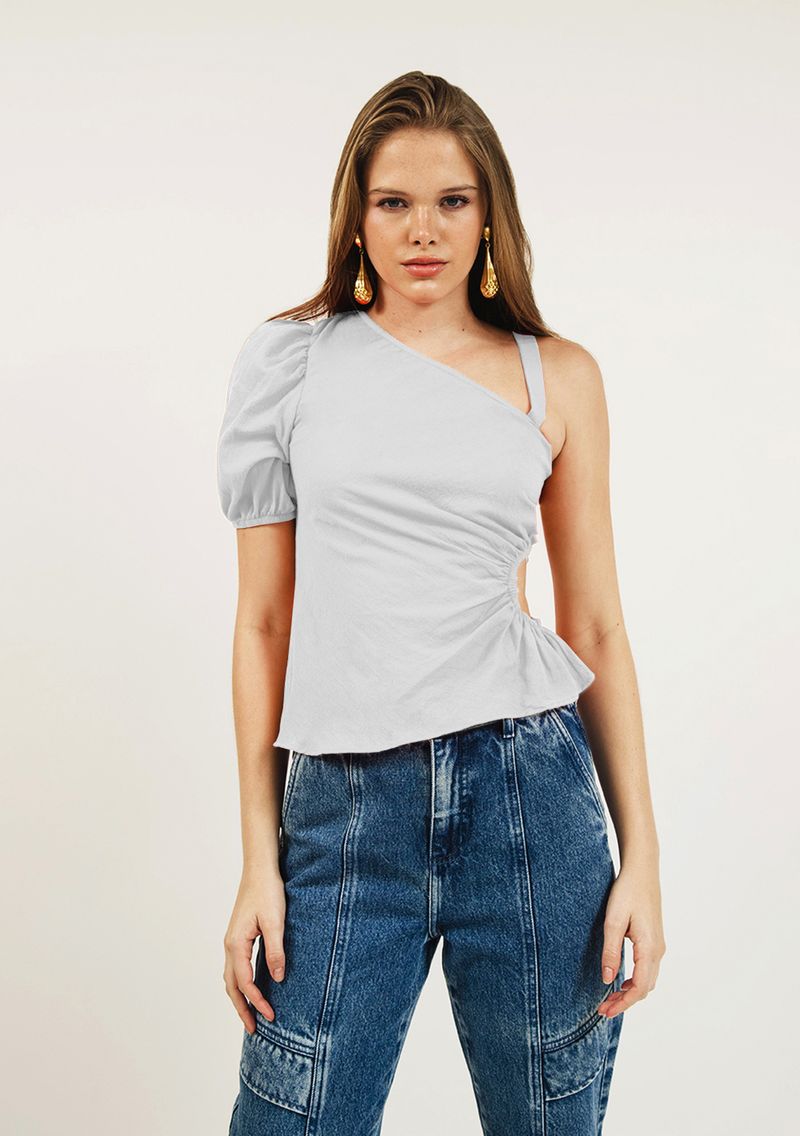 Blusa Zinco Ombro Só Manga Curta Com Franzido Off White