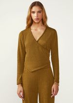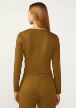 Blusa Zinco Solta Decote Careca Manga Longa Padrão Verde
