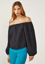 OUTLETFemininoRoupasBlusasBlusa Zinco Solta Decote Reto Manga 3 Quartos Padrão Preto