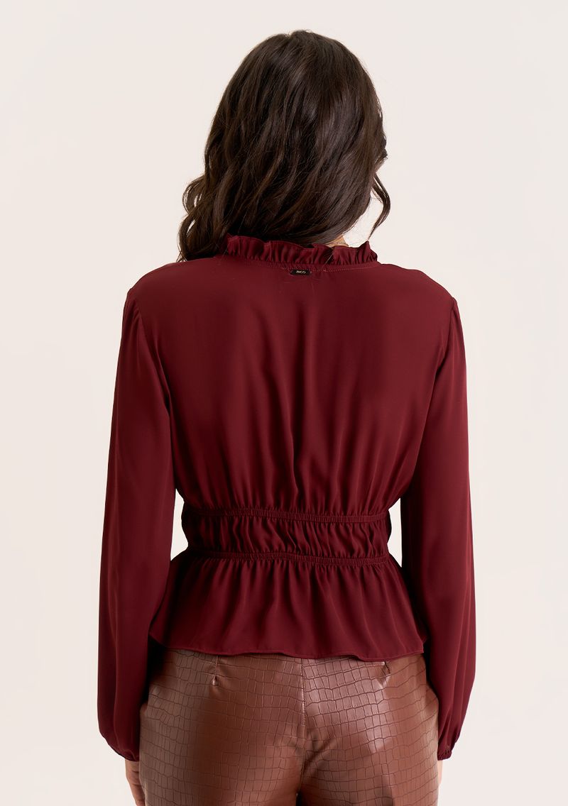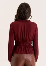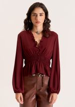 Blusa Zinco Solta Decote V Manga Longa Padrão Bordo