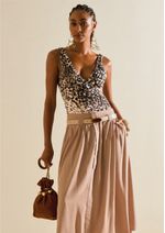 Body Morena Rosa Decote Transpassado Sem Manga Bege
