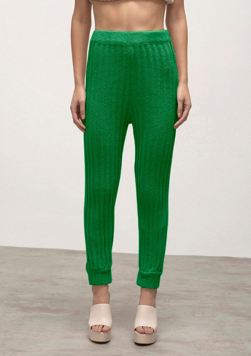 Calca Iódice Cenoura Cós Alto Punho Na Barra Verde