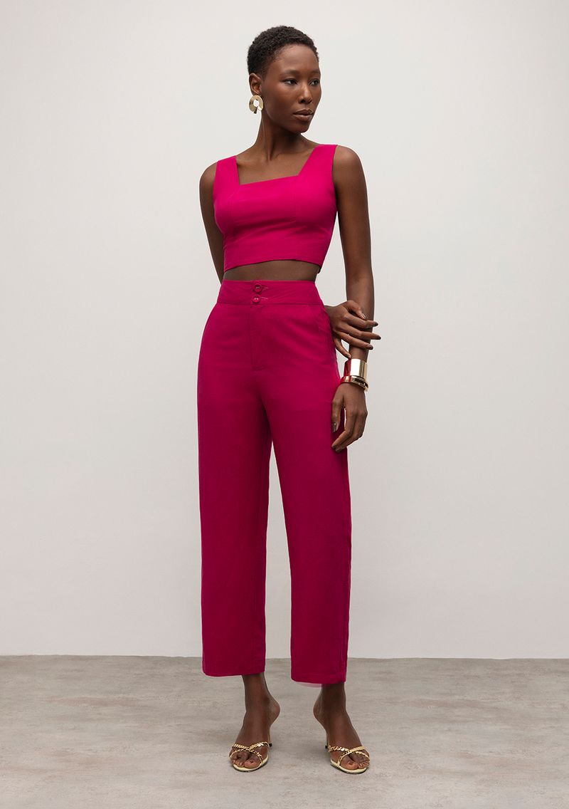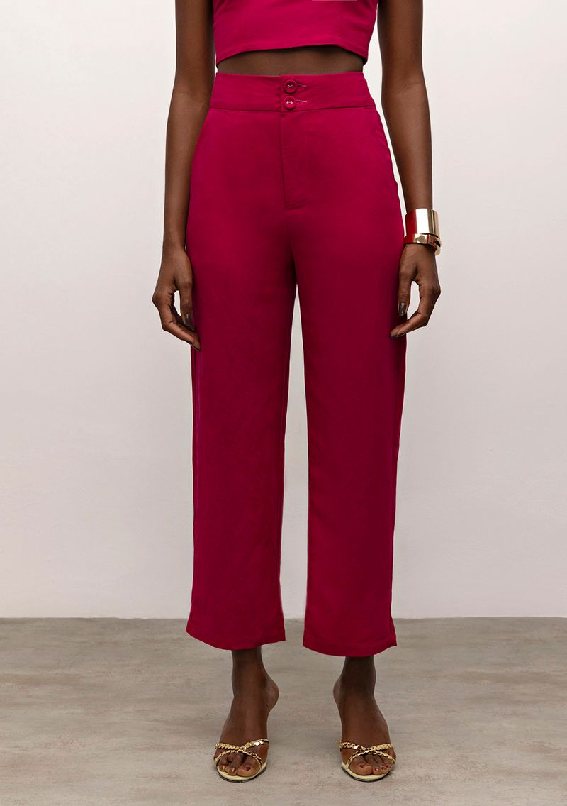 Calça Iódice Reta Cós Alto Bolso Faca Pink