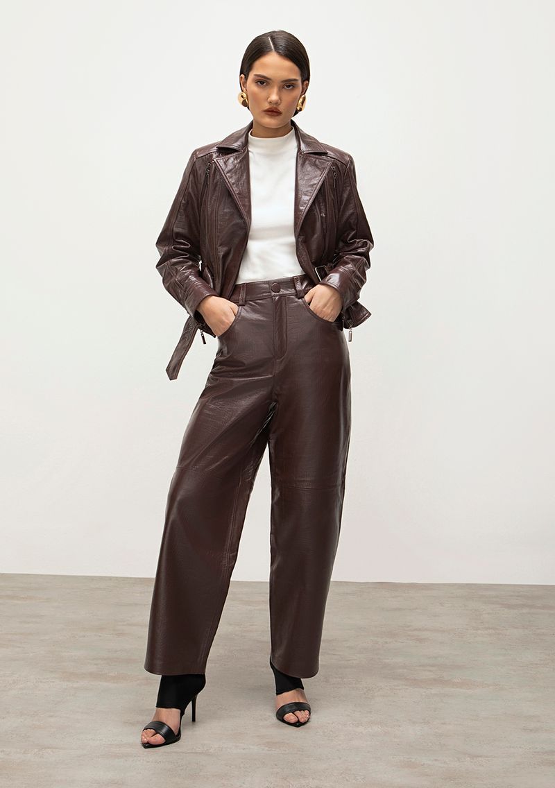 Parte PEÇA Composições: COURO 100%, Parte FORRO Composições: POLIESTER 90%, ELASTANO 10%