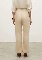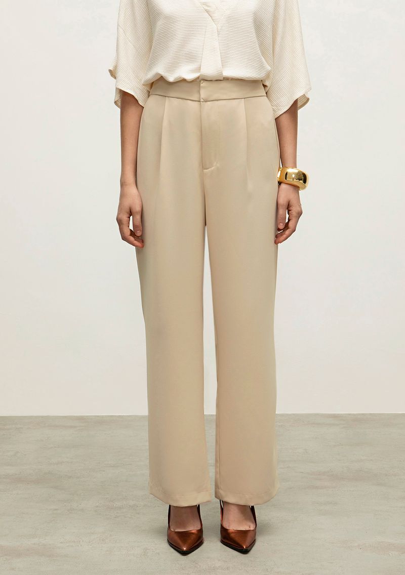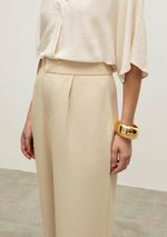 Calca Iódice Reta Cós Alto Com Pregas Bege