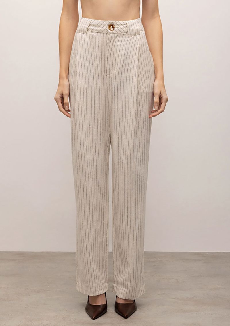 Calça Iódice Reta Cós Alto Com Pregas Cinza