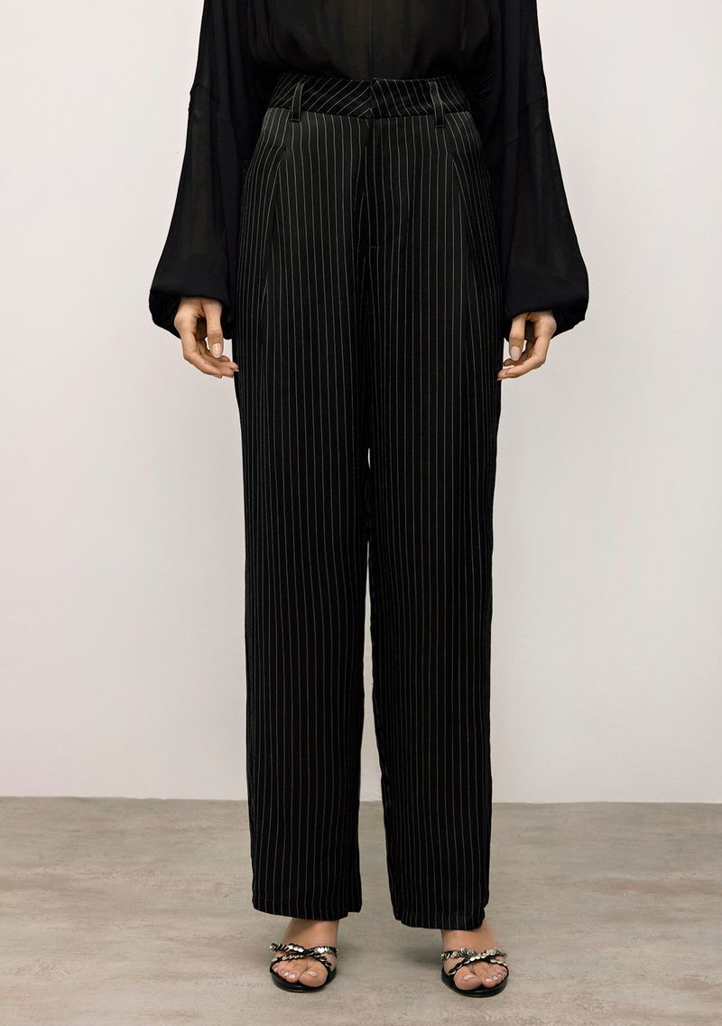 Calça Iódice Wide Cós Alto Com Pregas Preto