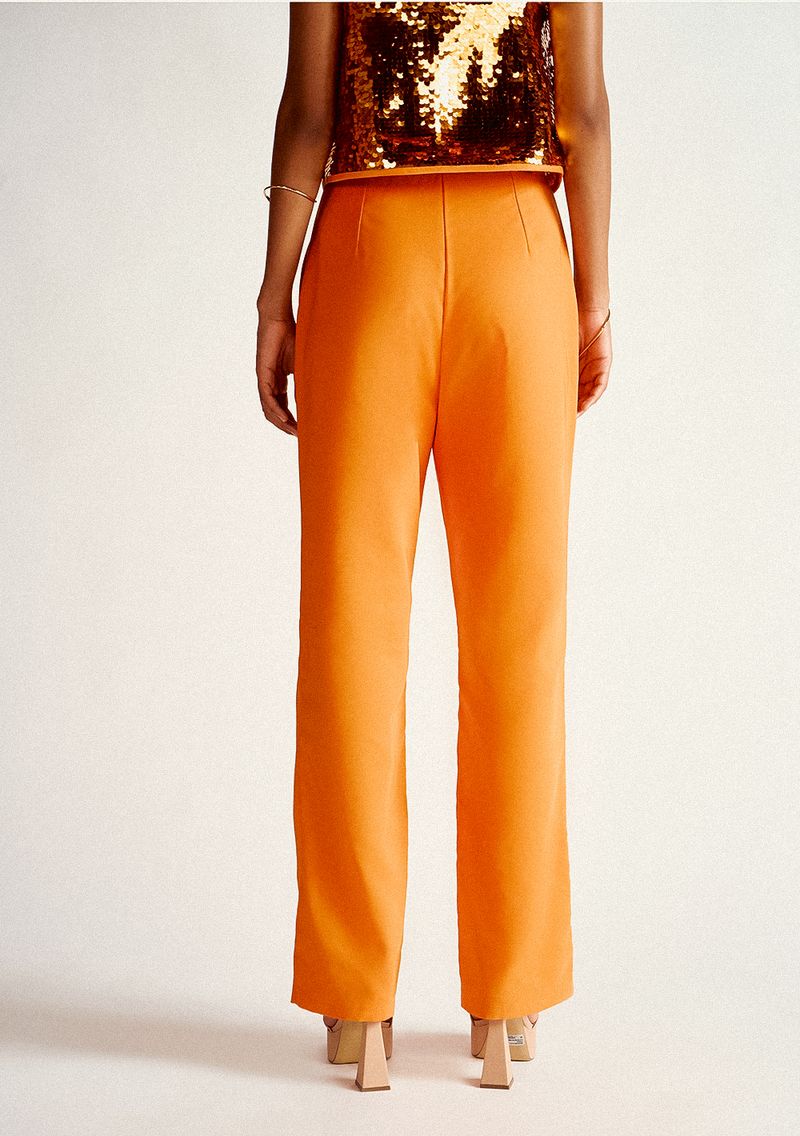 Calça Lebôh Flare Cós Alto Detalhe Zíper Laranja