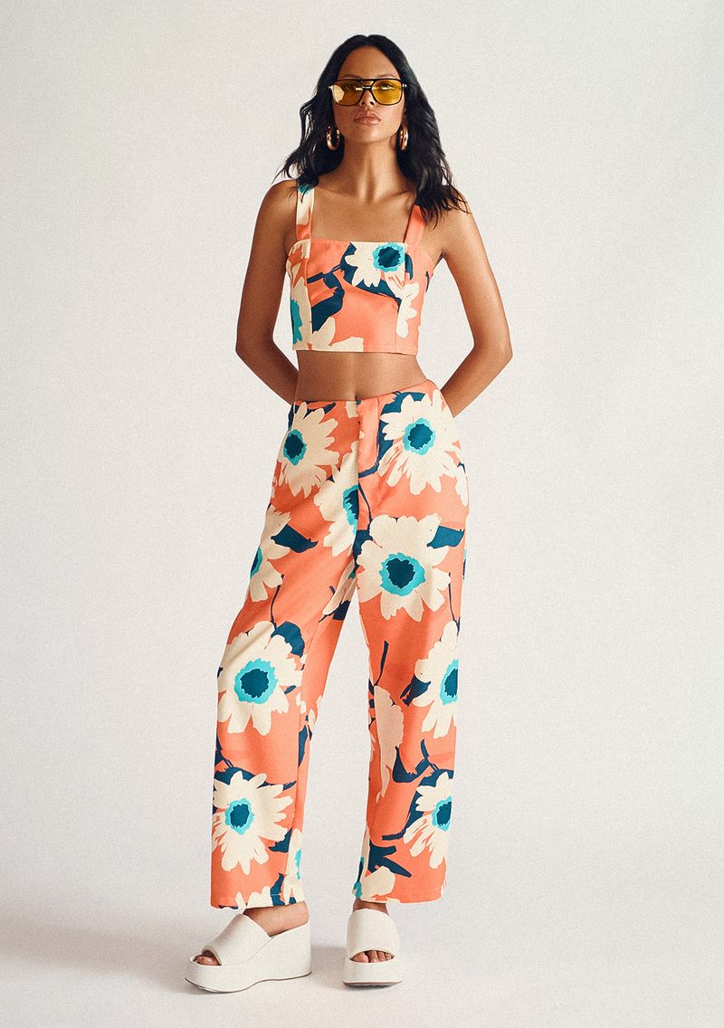 Calça Lebôh Reta Cós Alto Bolso Faca Laranja