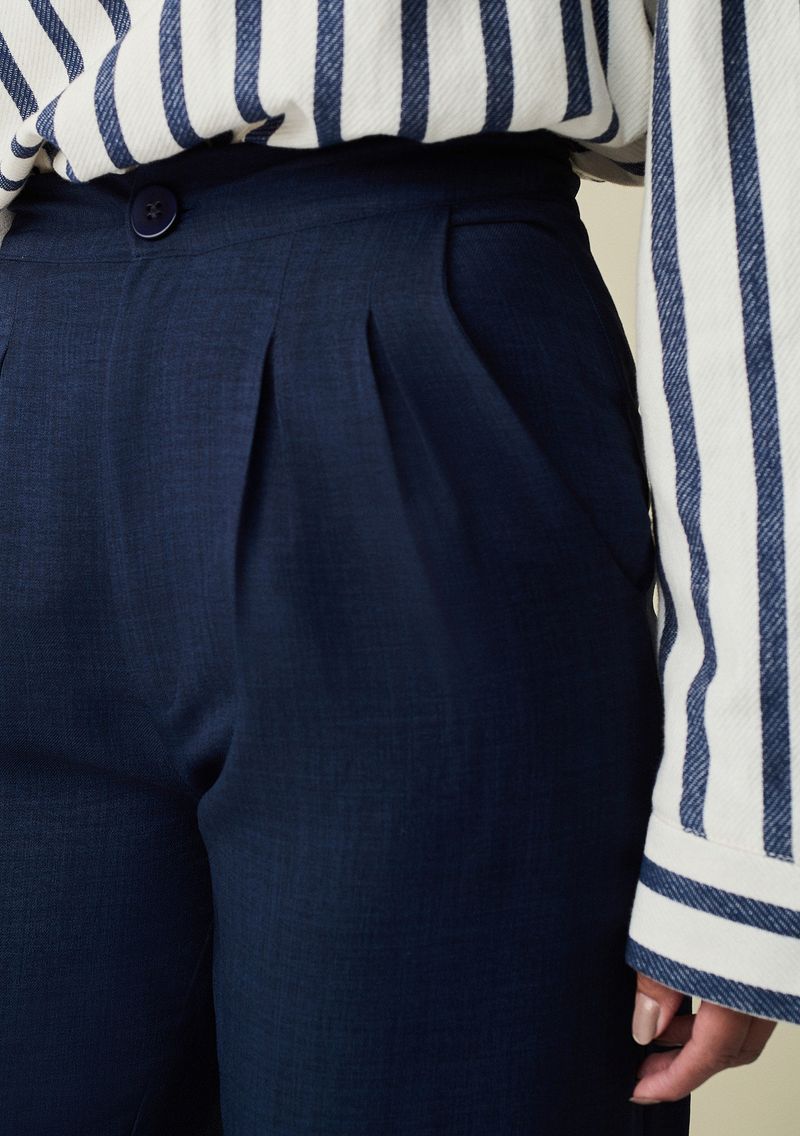 Calça Maria.Valentina Alfaiataria Cós Alto Com Botão Azul Marinho
