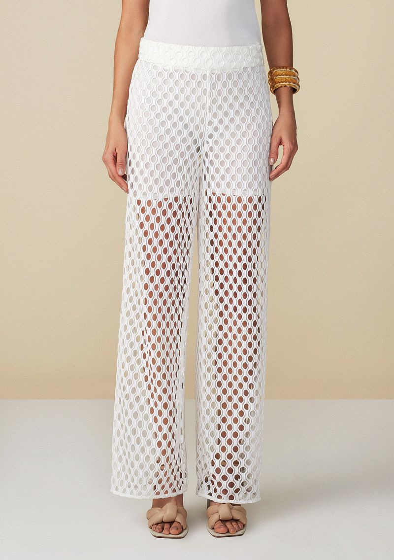 OUTLETFemininoRoupasCalçasCalça Maria.Valentina Pantalona Cós Intermediário Detalhe Tela Off White