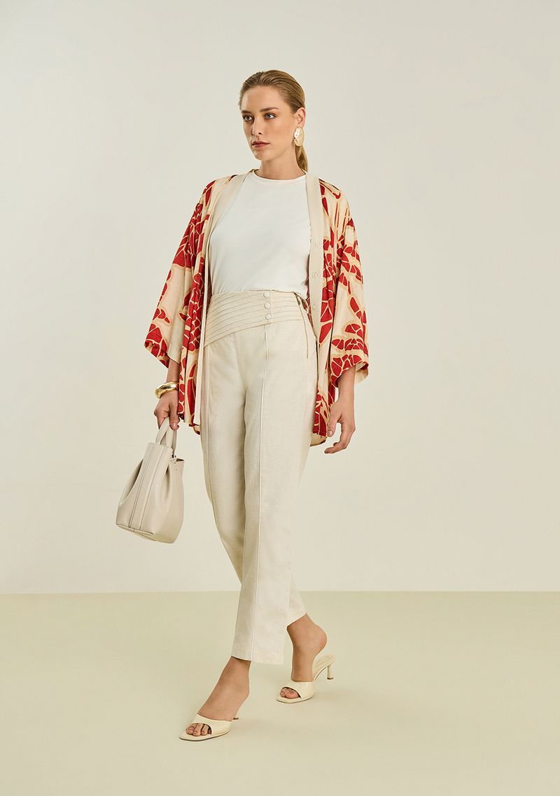 Parte PEÇA Composições: ALGODÃO 100%, Parte VIÉS Composições: ALGODÃO 61%, VISCOSE 26%, LINHO 11%, ELASTANO 2%