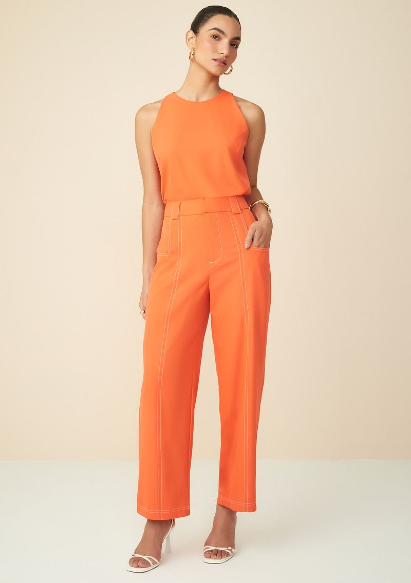 OUTLETFemininoRoupasCalçasCalça Maria.Valentina Reta Cós Alfaiataria Detalhe Bolso Laranja