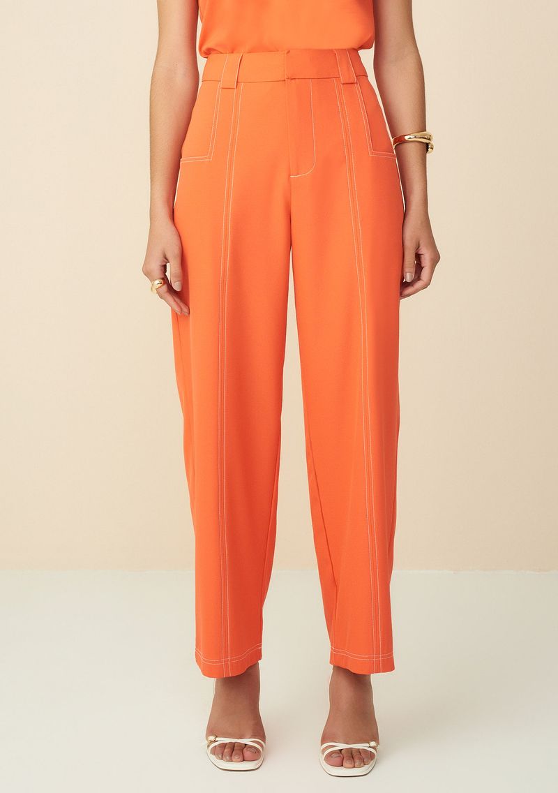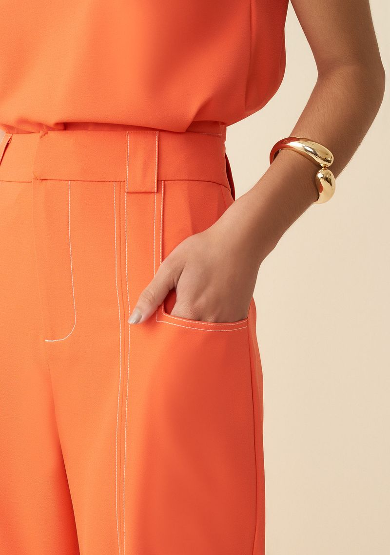 Calça Maria.Valentina Reta Cós Alfaiataria Detalhe Bolso Laranja