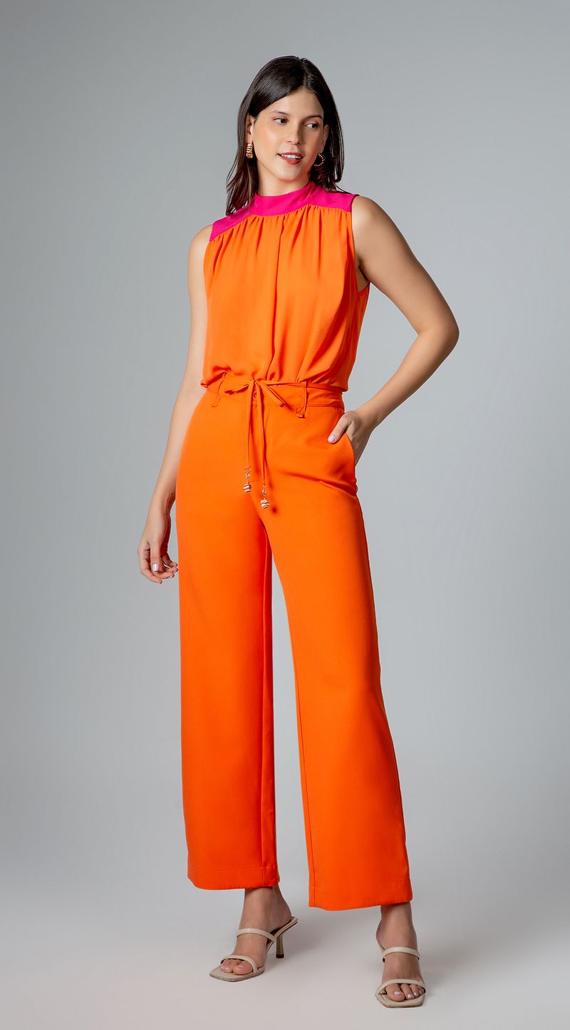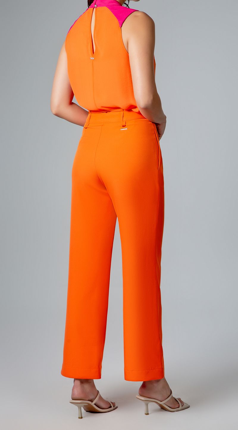 Calca Maria.Valentina Reta Cós Alto Com Cinto Laranja