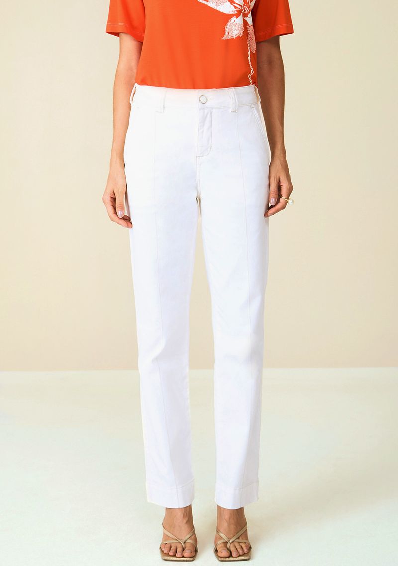 Calça Maria.Valentina Reta Slim Cós Intermediário Detalhe Pesponto Off White