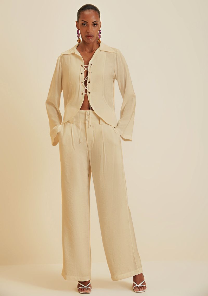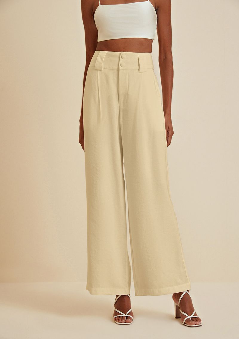 Calça Morena Rosa Alfaiataria Cós Alto Com Botão Cru