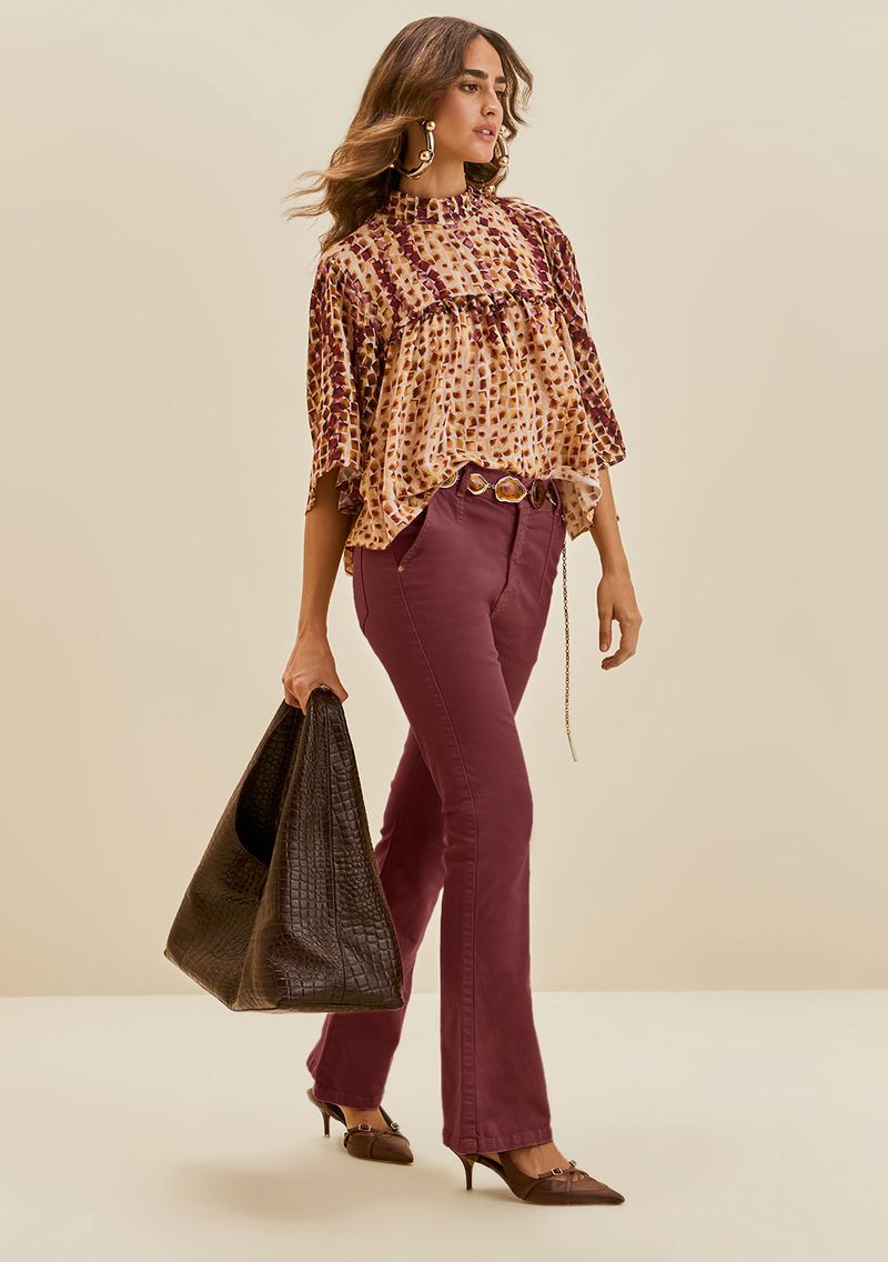 FemininoRoupasCalçasCalça Morena Rosa Boot Cut Alta Bordo