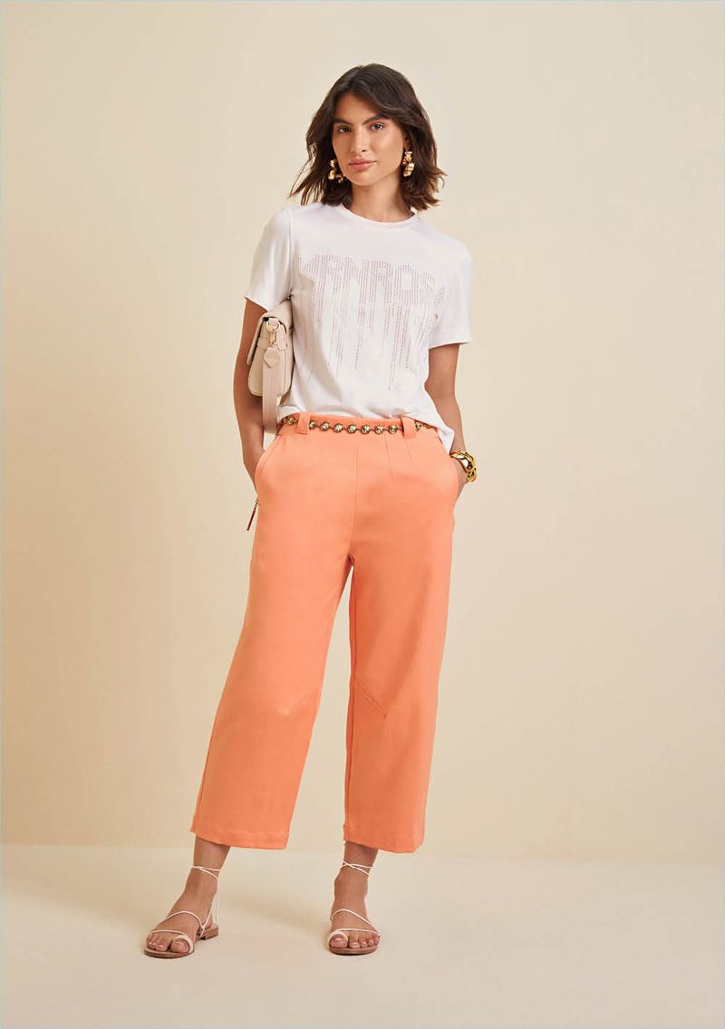 Calça Morena Rosa Pantacourt Cós Alto Com Cinto Rosa