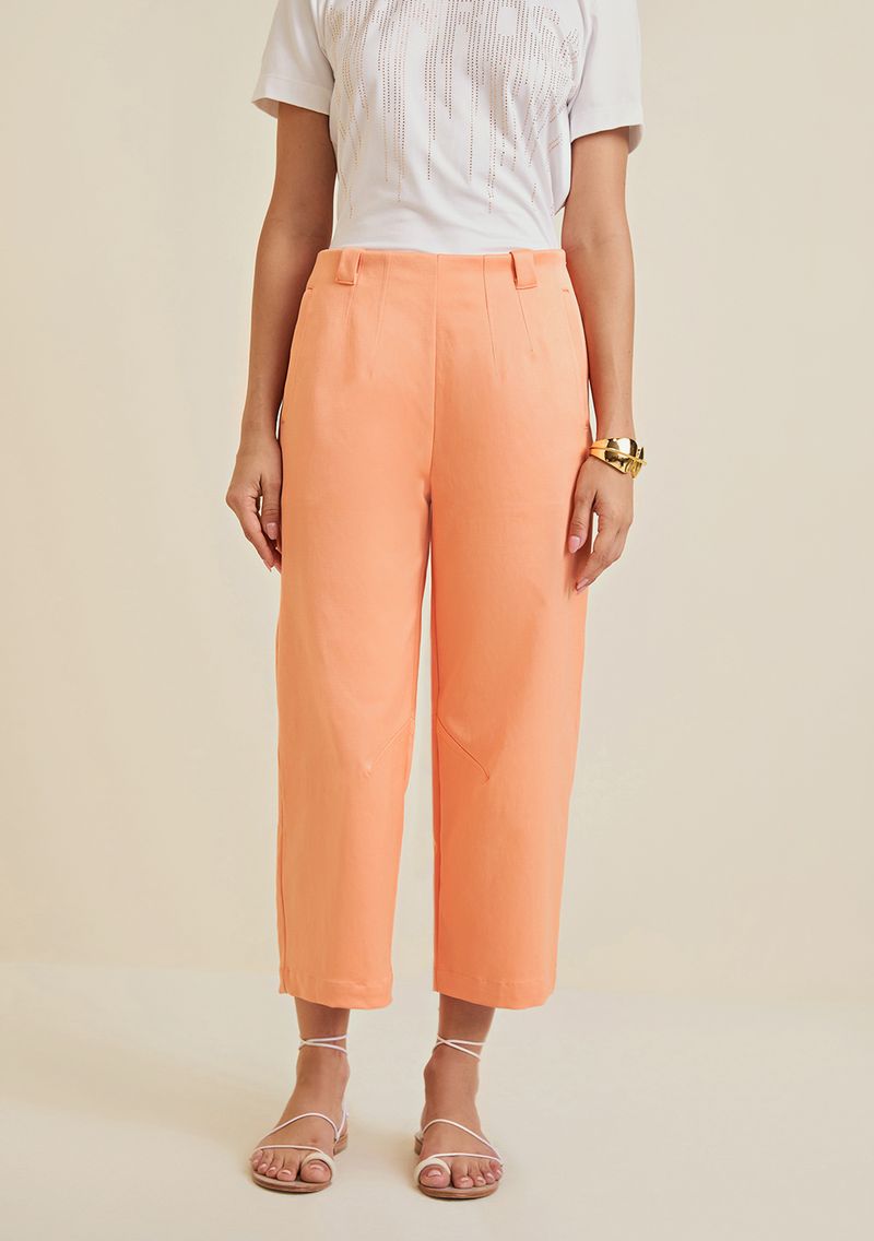 OUTLETFemininoRoupasCalçasCalça Morena Rosa Pantacourt Cós Alto Com Cinto Rosa