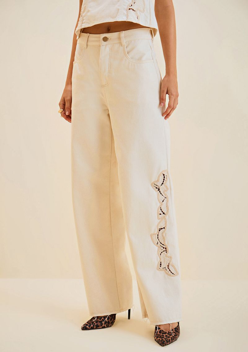 Calça Morena Rosa Pantalona Alta Off White