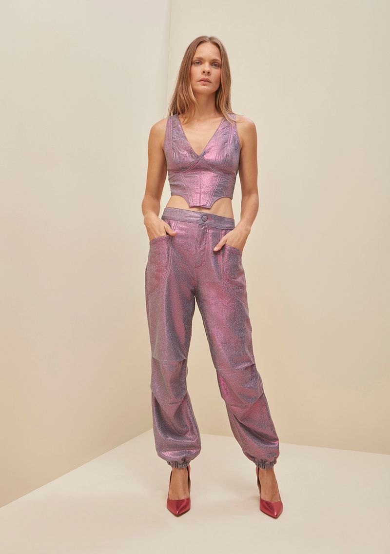 OUTLETFemininoRoupasJeansCalçasCalca Morena Rosa Parachute Cós Intermediário Com Foil Pink