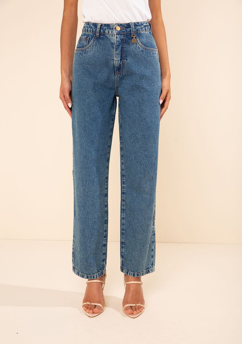 Calça Morena Rosa Reta Alta Azul