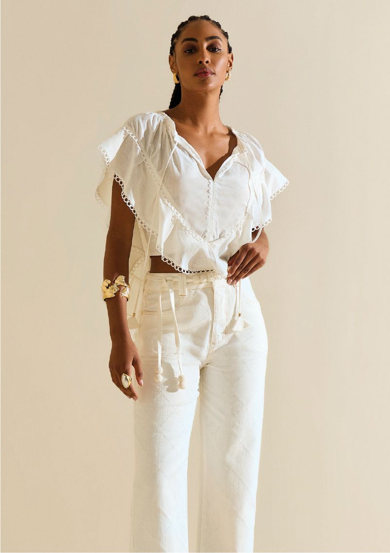 FemininoRoupasCalçasCalça Morena Rosa Reta Alta Off White