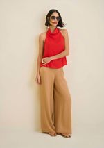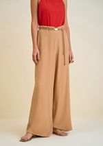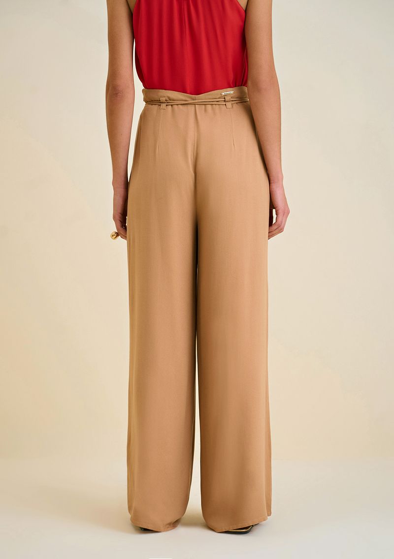 Calça Morena Rosa Reta Cós Alto Com Cinto Marrom