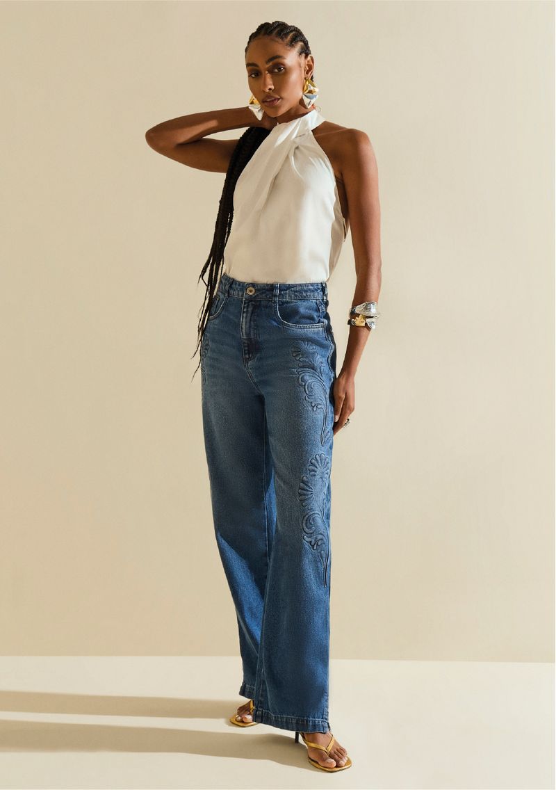 FemininoRoupasCalçasCalça Morena Rosa Wide Alta Azul