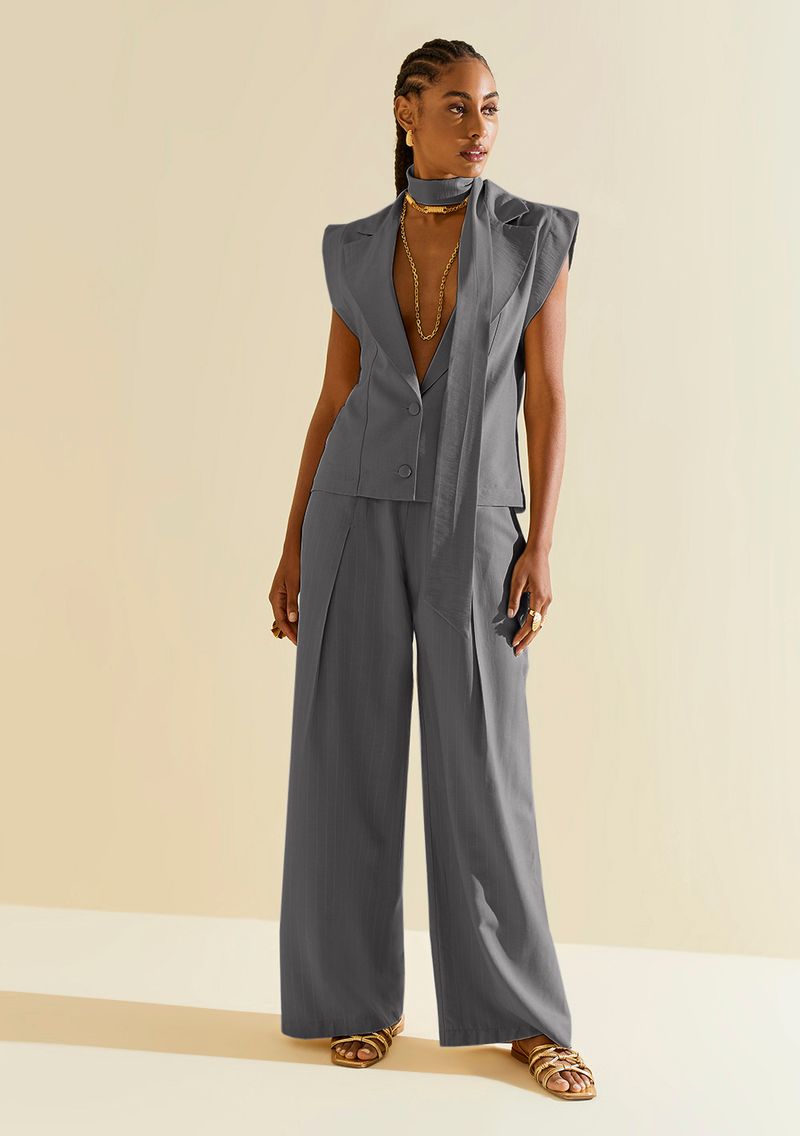 OUTLETFemininoRoupasCalçasCalça Morena Rosa Wide Alta Cinza
