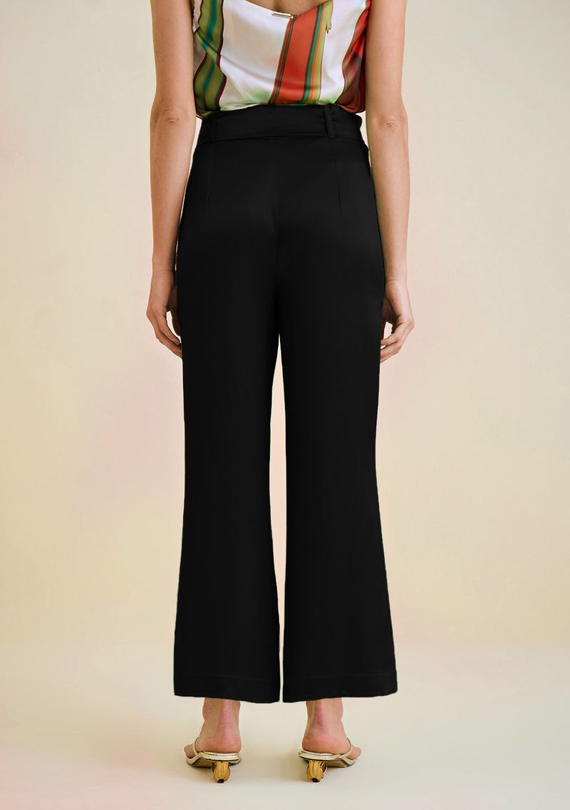 Calça Morena Rosa Wide Cós Alto Com Bolso Preto
