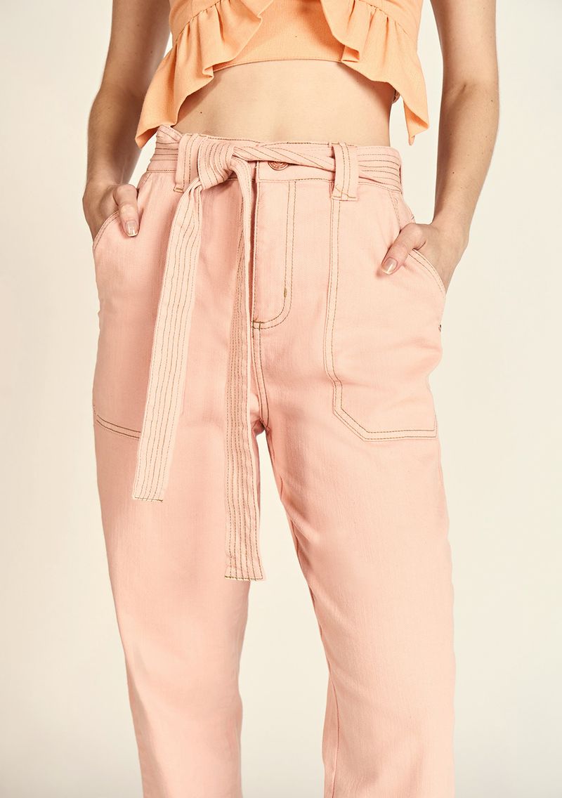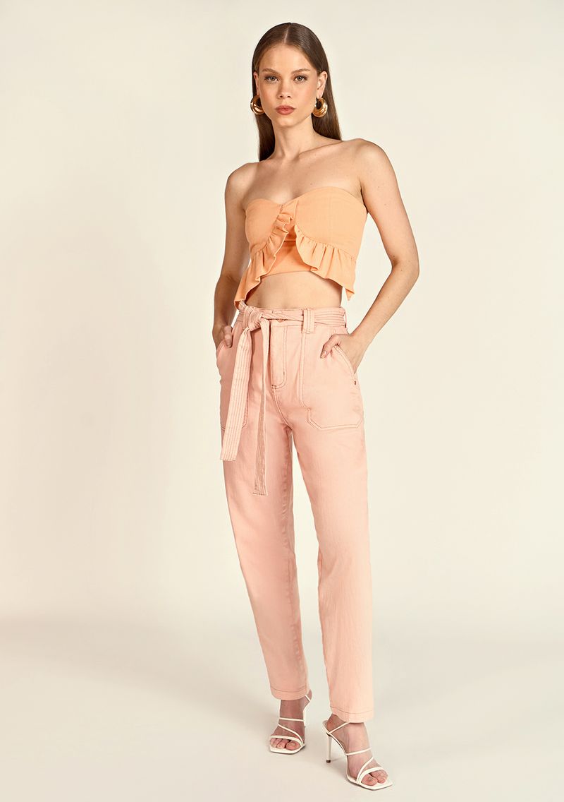 OUTLETFemininoRoupasCalçasCalça Zinco Cenoura Cós Alto Com Faixa Laranja
