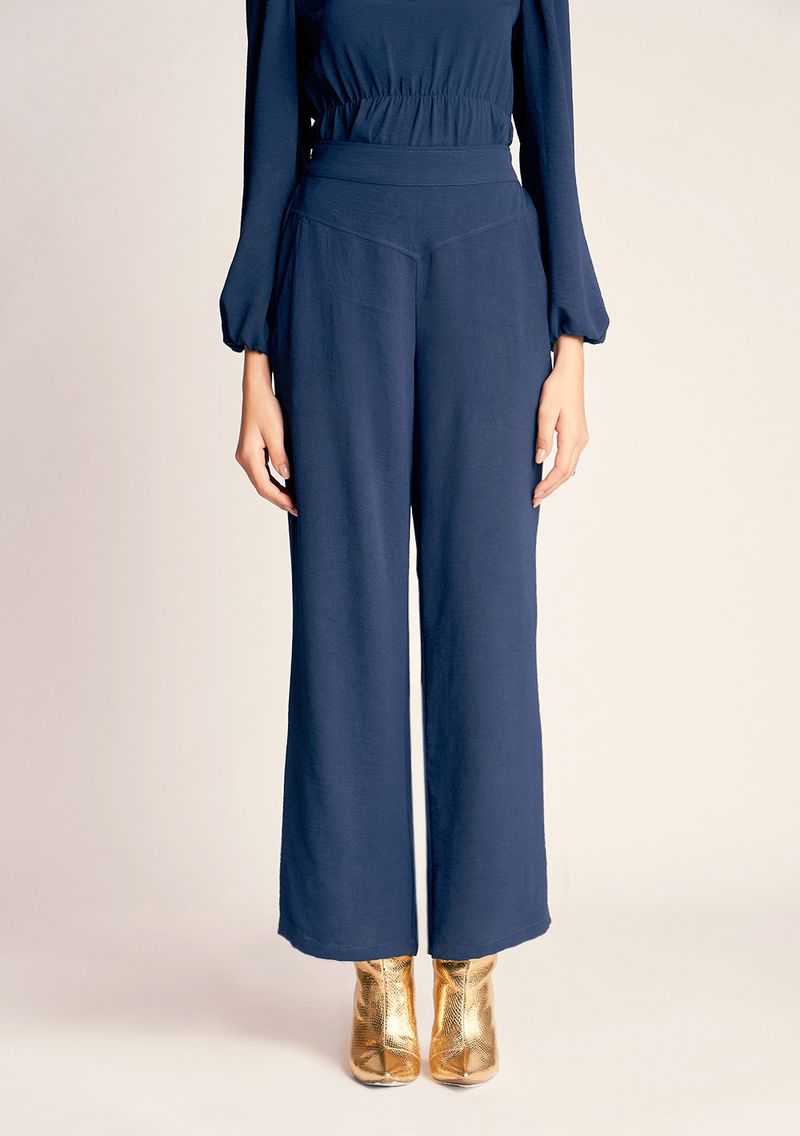 OUTLETFemininoRoupasCalçasCalca Zinco Pantalona Cós Alto Bolso Faca Azul