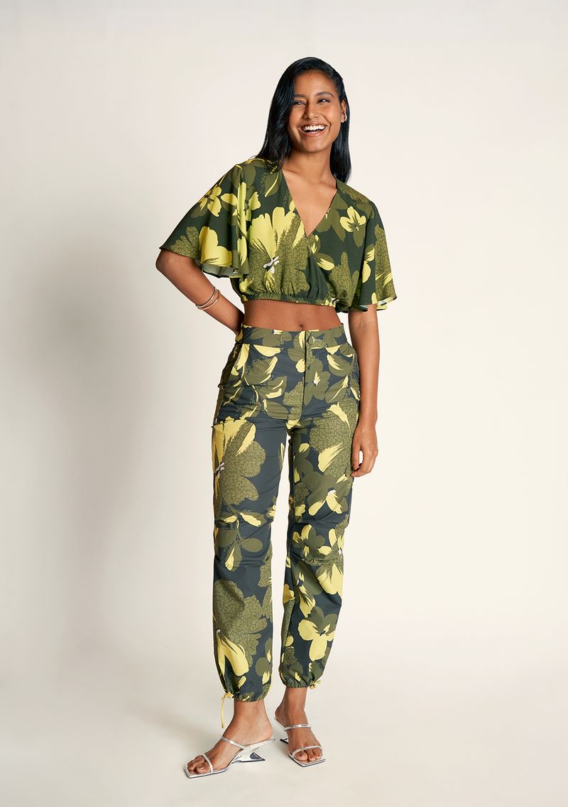 OUTLETFemininoRoupasCalçasCalca Zinco Parachute Cós Alto Com Cadarço Verde