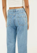 Calça Zinco Reta Cós Alto Bordado Manual Jeans