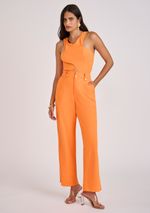 Calça Zinco Reta Cós Alto Com Bolso Laranja